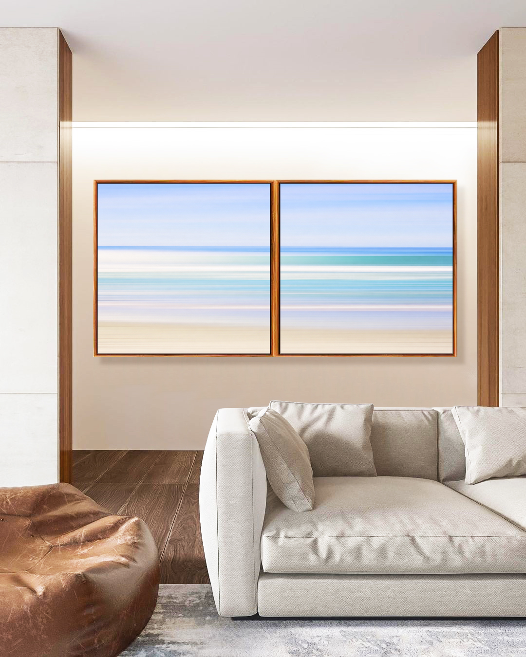 Este Duo de Quadros Quadrados traduz a fluidez do mar em tons turquesa sob um céu lilás suave, criando profundidade e tranquilidade visual. Ideal para decorar salas amplas, quartos acolhedores, escritórios modernos ou halls de entrada refinados.