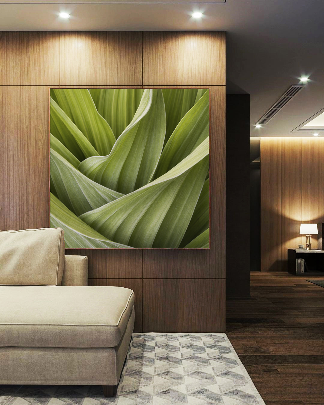 A presença da natureza através de tons verdes suaves transforma o ambiente em um refúgio visual. Combina perfeitamente com salas aconchegantes, quartos serenos, escritórios ou espaços com proposta natural e elegante.