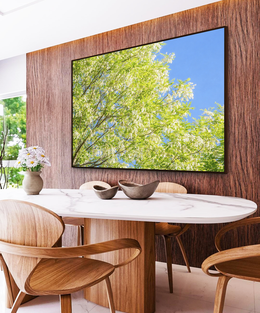 Elegante e sereno, este Quadro Horizontal com árvore acácia-branca sob céu azul cria sensação de liberdade e conexão com a natureza. A escolha ideal para salas refinadas, quartos tranquilos, escritórios modernos ou halls de entrada marcantes.
