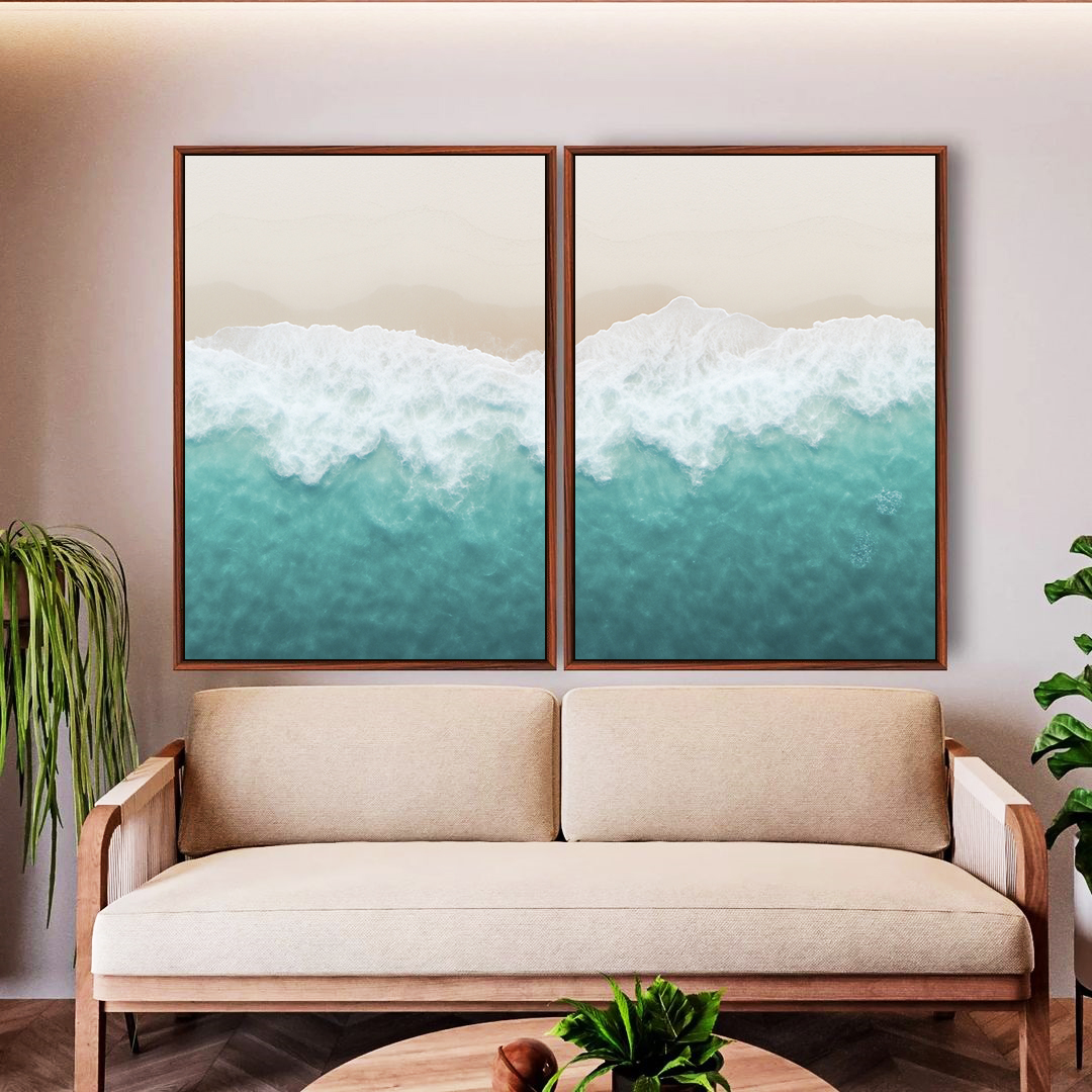 Calmo e luminoso, este Duo de Quadros com litoral claro e mar turquesa cria um ponto focal natural e elegante. Ideal para compor salas amplas, quartos refinados, escritórios elegantes ou halls de entrada com presença visual.