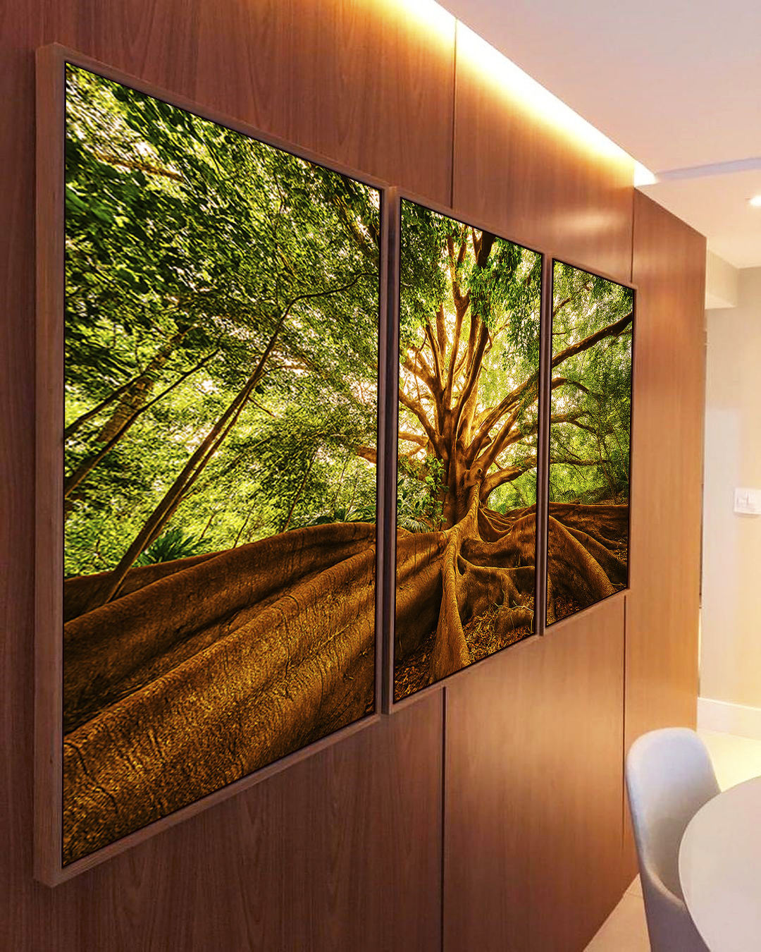 Inspirado na força da natureza, este Trio de Quadros transmite harmonia e elegância com sua árvore de raízes Majestosas. Perfeito para dar vida a salas de estar, escritórios ou halls com um toque de serenidade e imponência. Lindíssimo!