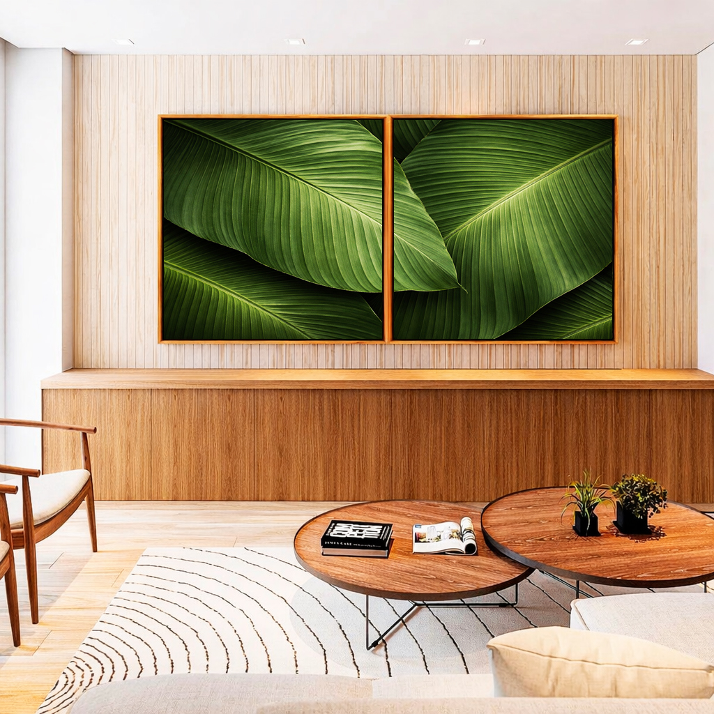 Duo de Quadros Quadrados Folhagem Bananeira tropical Verde Natureza Canvas Moldura