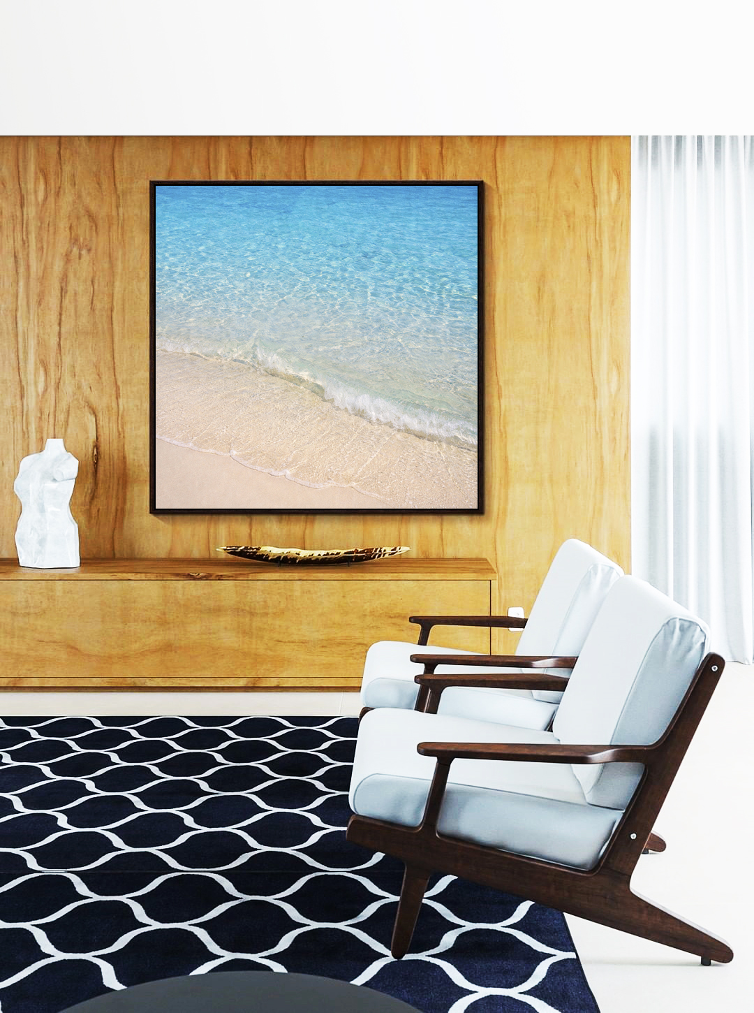 Quadro Quadrado Praia Branca Luminosa Mar Azul Claro Canvas Moldura
