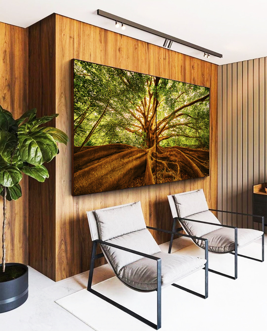 Inspirado na força da natureza, este Duo de Quadros transmite harmonia e elegância com sua árvore de raízes Majestosas. Perfeito para dar vida a salas de estar, escritórios ou halls com um toque de serenidade e imponência. Lindíssimo!