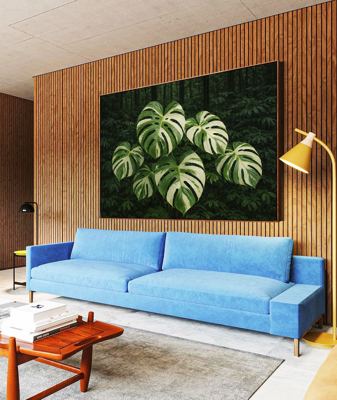 Elegante e natural, este Quadro Horizontal com plantas costela de adão em tons de verde cria frescor e sofisticação visual. Ideal para decorar salas refinadas, quartos elegantes, escritórios modernos ou halls de entrada imponentes.