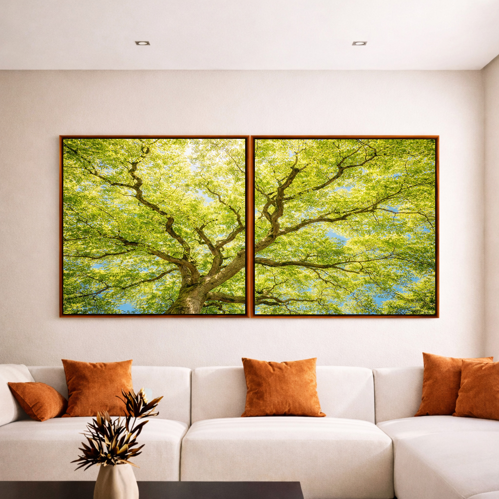 Harmonioso e envolvente, este Duo de Quadros Quadrados com folhagens em verde claro valoriza o ambiente com equilíbrio e elegância. A escolha certa para salas contemporâneas, quartos sofisticados ou escritórios elegantes.