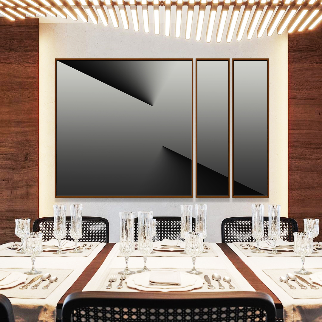 Trio de Quadros Estilizados Abstrato Degradê Cinza Chumbo Prata Efeito Profundidade Canvas Moldura