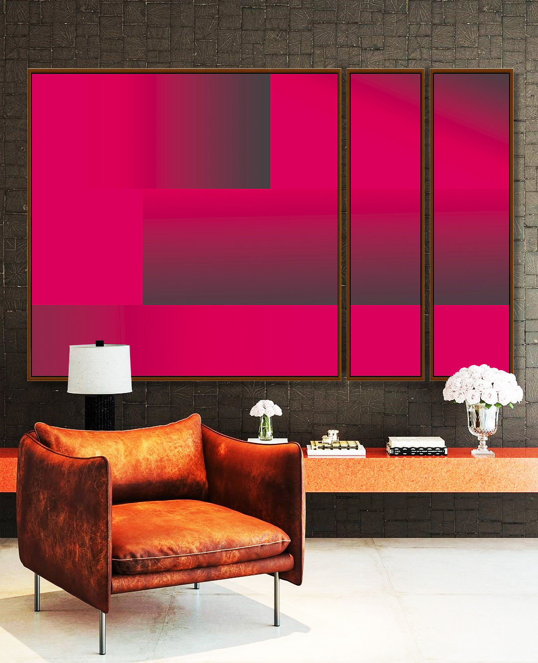 O equilíbrio entre arte e elegância define este Trio de Quadros Estilizados mosaico. Seu tom de Rosa em degradê e design geométrico são a escolha certa para compor salas, quartos ou halls de entrada com um toque moderno, delicado e inspirador.