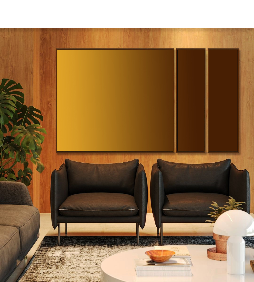 Com tons de amarelo mostarda e marrom em degradê, este Trio de Quadros Estilizados adiciona cor, equilíbrio e elegância à decoração. Ideal para salas amplas, quartos modernos ou halls de entrada que pedem um toque contemporâneo marcante e acolhedor.