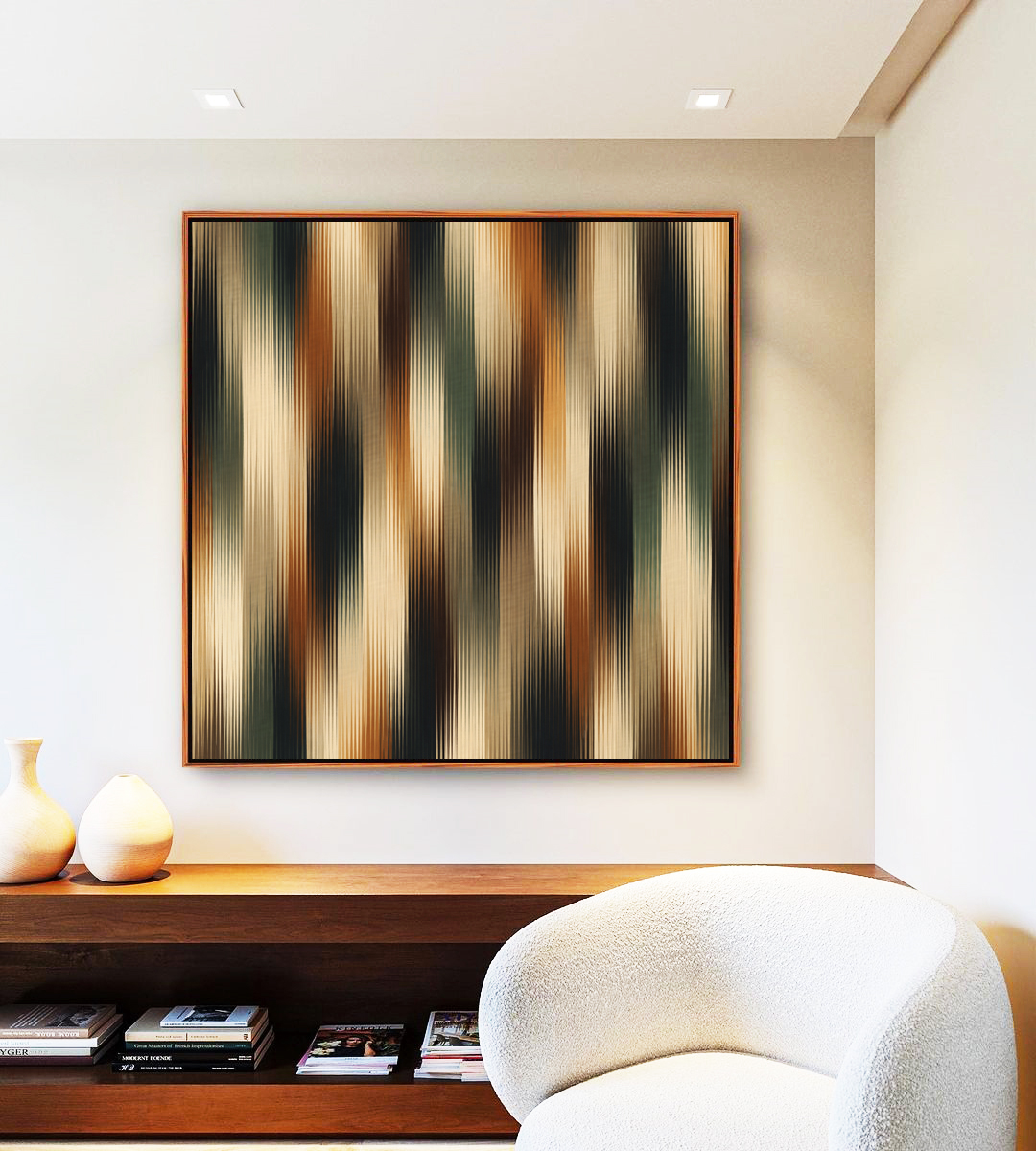 Inspirador e elegante, este Quadro Quadrado de listras em degradê verde, cobre e marfim cria ponto focal sofisticado e cheio de personalidade. Ideal para valorizar salas modernas, quartos estilosos ou escritórios amplos.