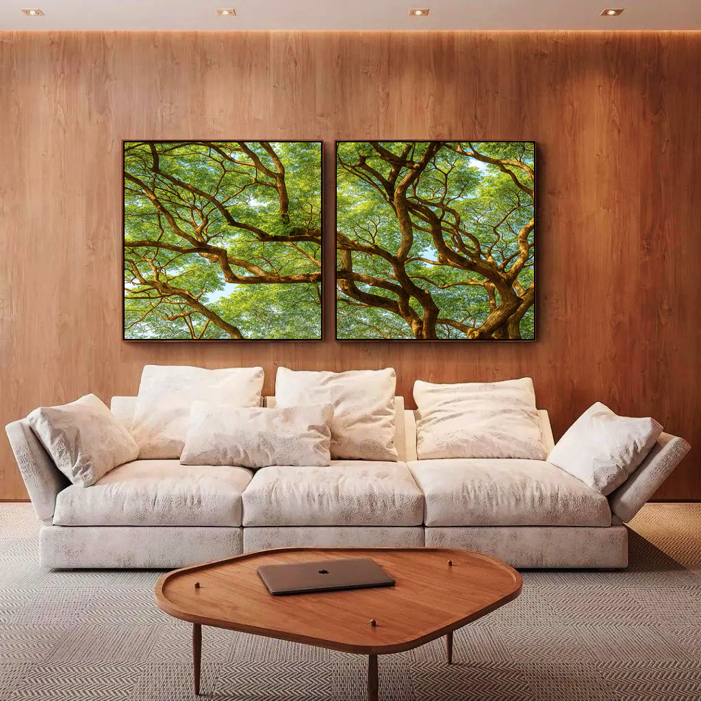 A serenidade da natureza se destaca neste Duo de Quadros Quadrados, que retrata a copa de uma árvore com detalhes envolventes. Perfeito para decorar salas, escritórios ou halls com equilíbrio e elegância. Lindo e impactante!