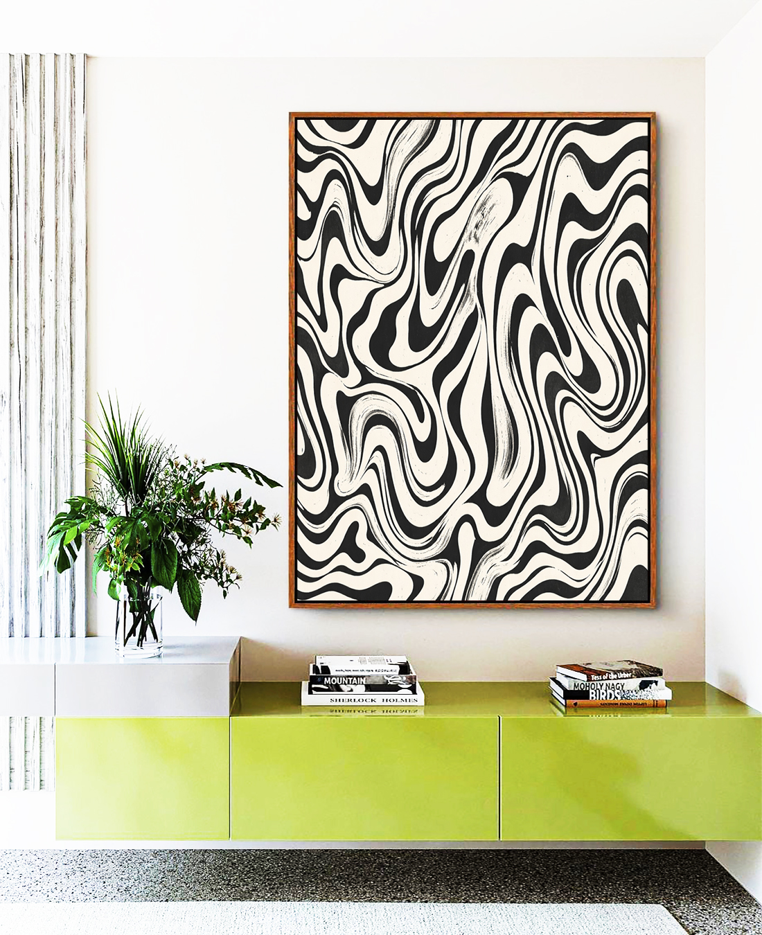 Moderno e envolvente, este Quadro Vertical com ondulações abstratas em preto e branco adiciona profundidade e estilo à decoração. A escolha certa para salas sofisticadas, quartos elegantes ou halls de entrada distintos.