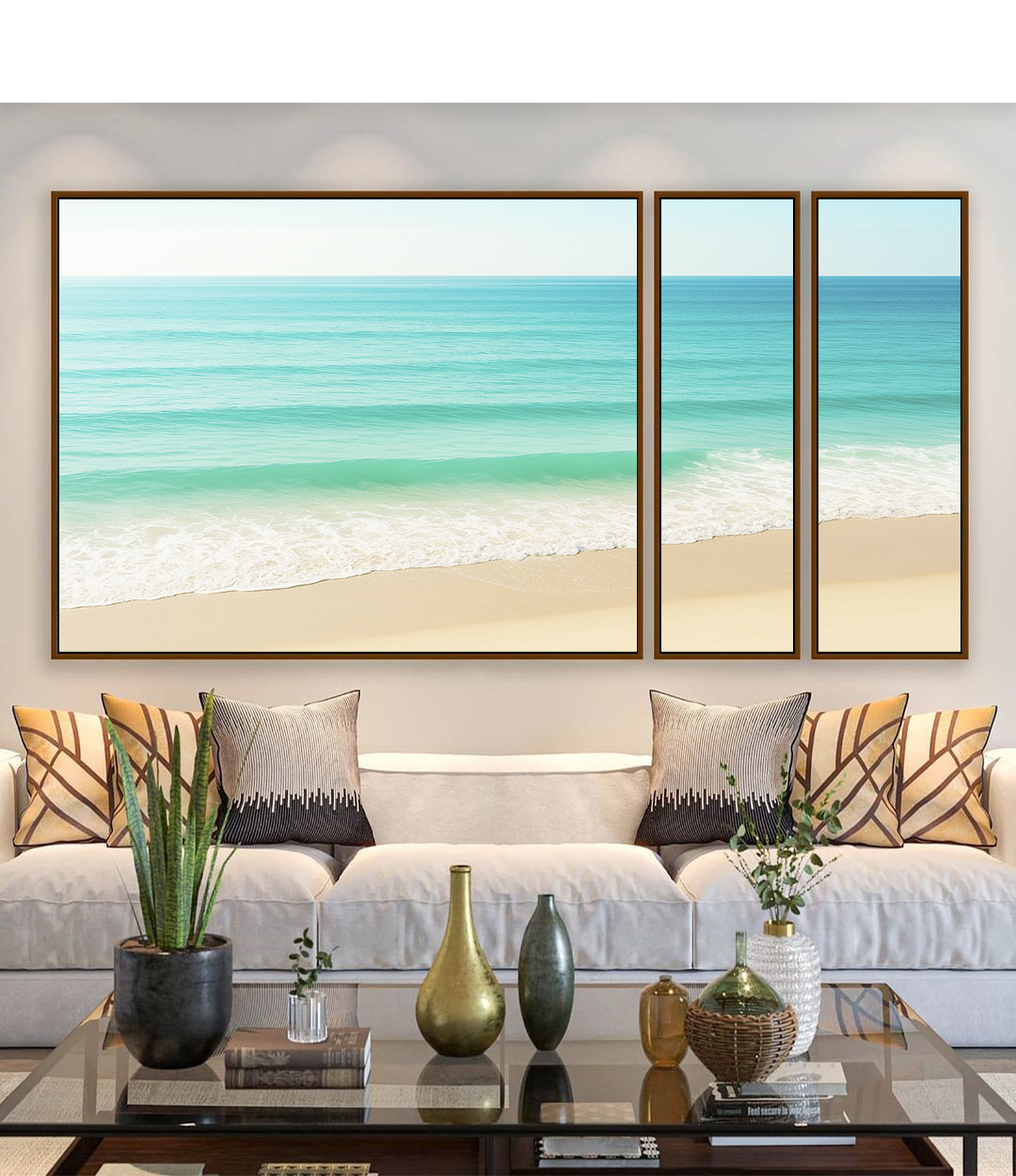 O equilíbrio entre o mar calmo e o céu azul cria uma sensação única de paz. Este Trio de Quadros Estilizados é perfeito para quem busca elegância e leveza, sendo a escolha certa para realçar salas, escritórios ou quartos com um toque de natureza e sofisticação.