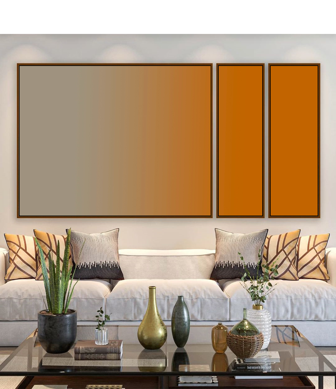 Degradê abstrato em cinza e laranja tangerina que traz energia e elegância ao ambiente. Ideal para salas modernas, escritórios criativos e espaços com personalidade.