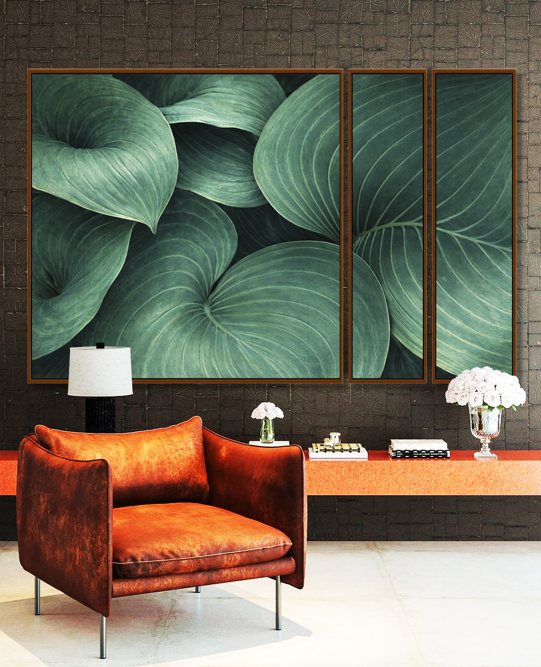 Este Trio de Quadros Estilizados destaca folhas de Hosta em tons verdes intensos, criando um visual sofisticado e atemporal. Ideal para decorar salas de estar, quartos sofisticados, escritórios elegantes ou halls de entrada com identidade natural.