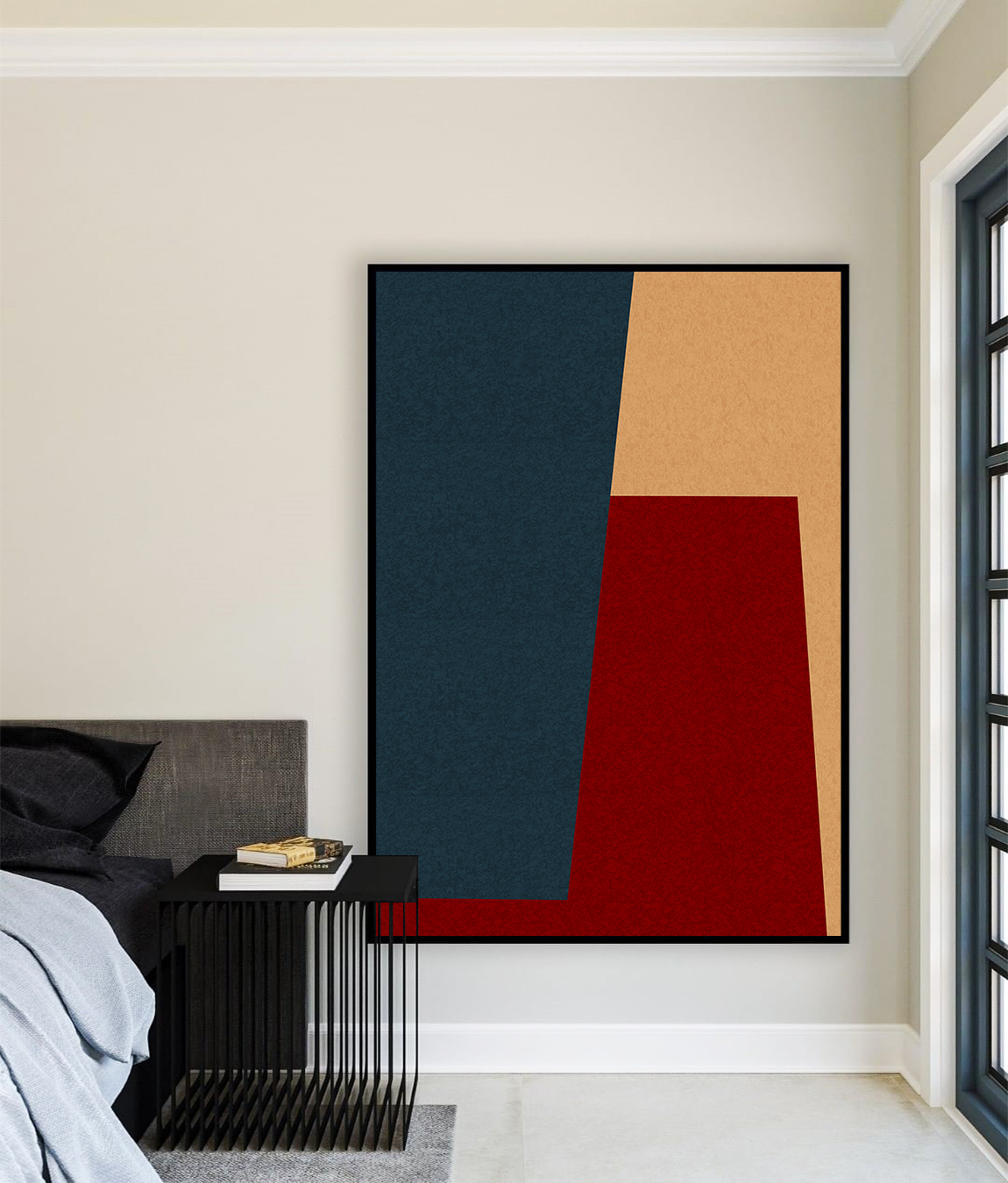 Este Quadro Vertical abstrato minimalista combina tons de azul e vermelho em linhas geométricas modernas, despertando sofisticação e estilo. A escolha ideal para decorar sua sala, quarto ou escritório, trazendo charme e personalidade.