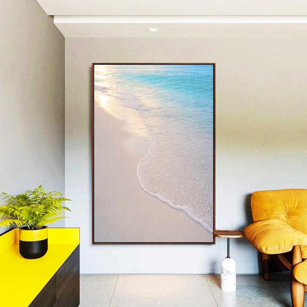 A beleza da praia em cores suaves e luminosas, transmitindo paz e aconchego. Um toque sofisticado para ambientes modernos, claros e cheios de leveza.