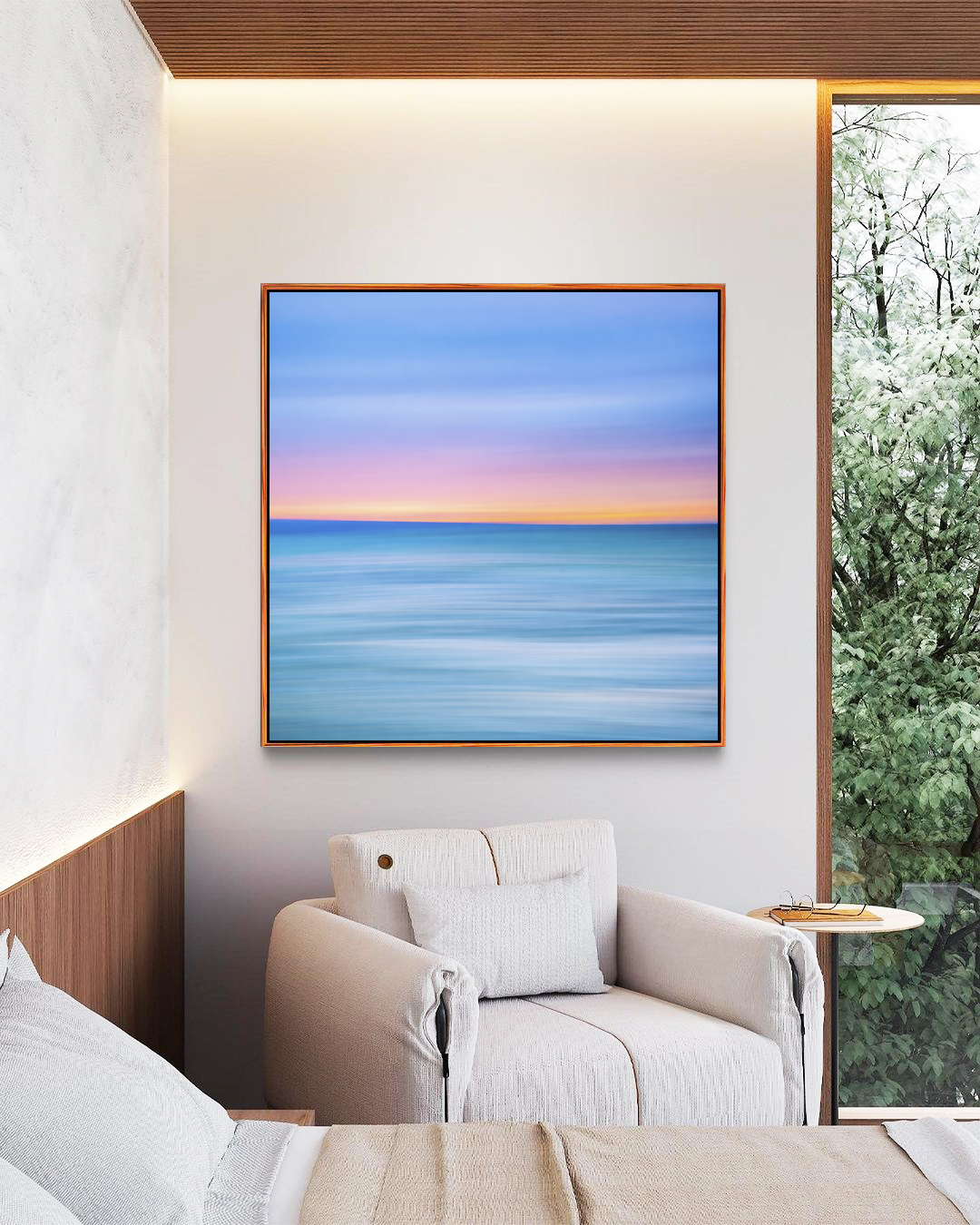 Quadro Quadrado Mar Azul Céu Pôr do Sol Rosa Efeito Movimento Canvas Moldura