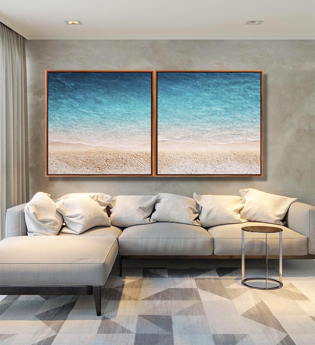 Calmo e marcante, este Duo de Quadros Quadrados de natureza litorânea com areia branca e mar azul translúcido valoriza o ambiente com frescor sofisticado, tendência. A escolha certa para salas modernas, quartos elegantes ou escritórios elegantes.