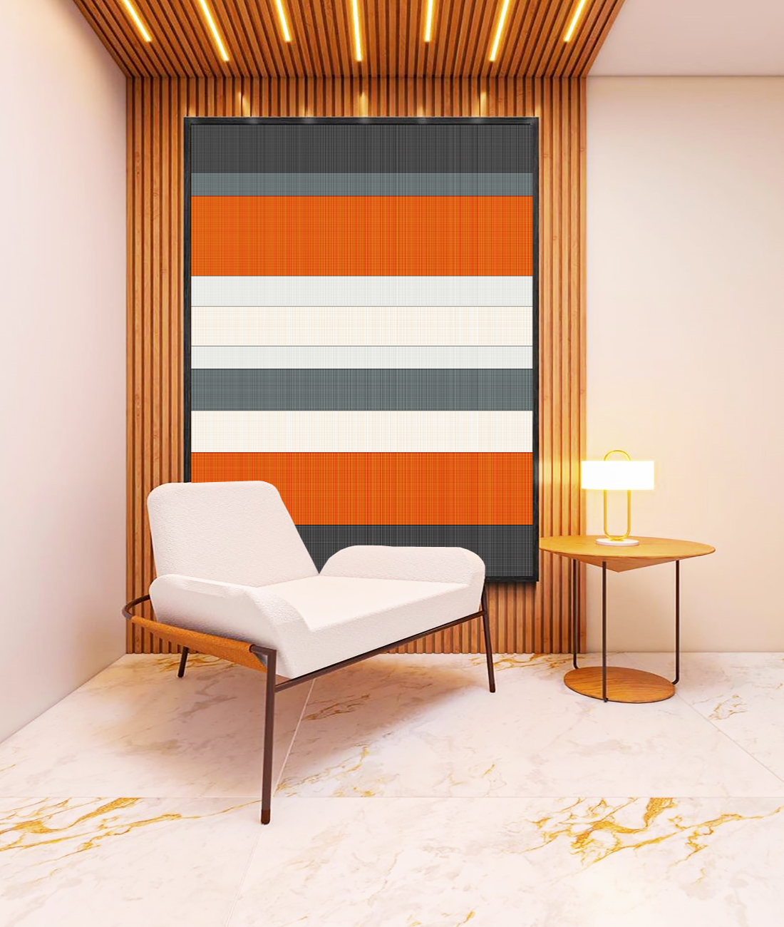 Este Quadro Vertical abstrato combina listras em laranja, branco e cinza, criando uma composição moderna e sofisticada. A escolha ideal para valorizar salas de estar, quartos elegantes, escritórios contemporâneos bem iluminados.