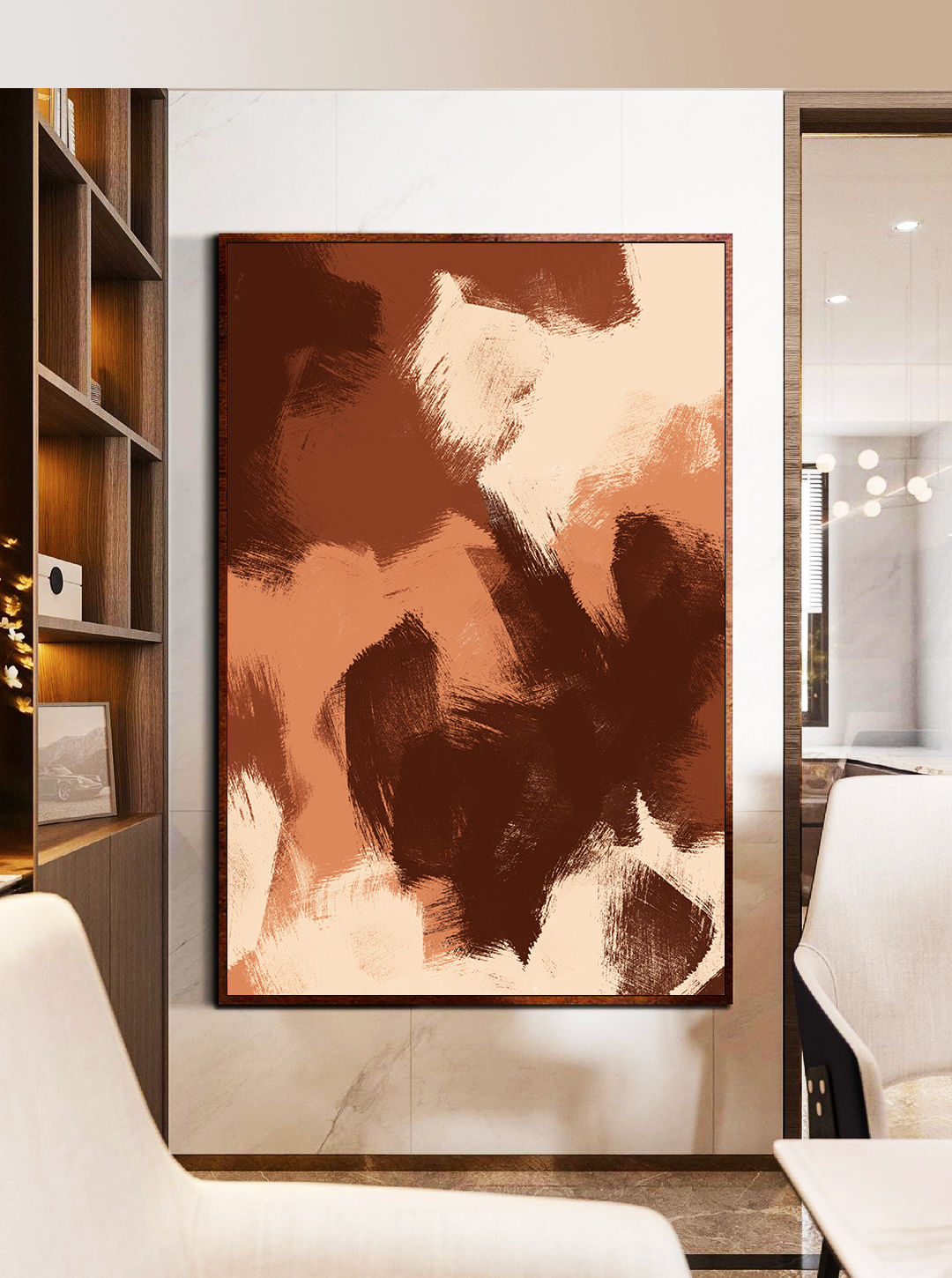 Com efeito de pintura em tons marrom e pêssego, este Quadro Vertical adiciona calor, estilo e elegância discreta ao ambiente.