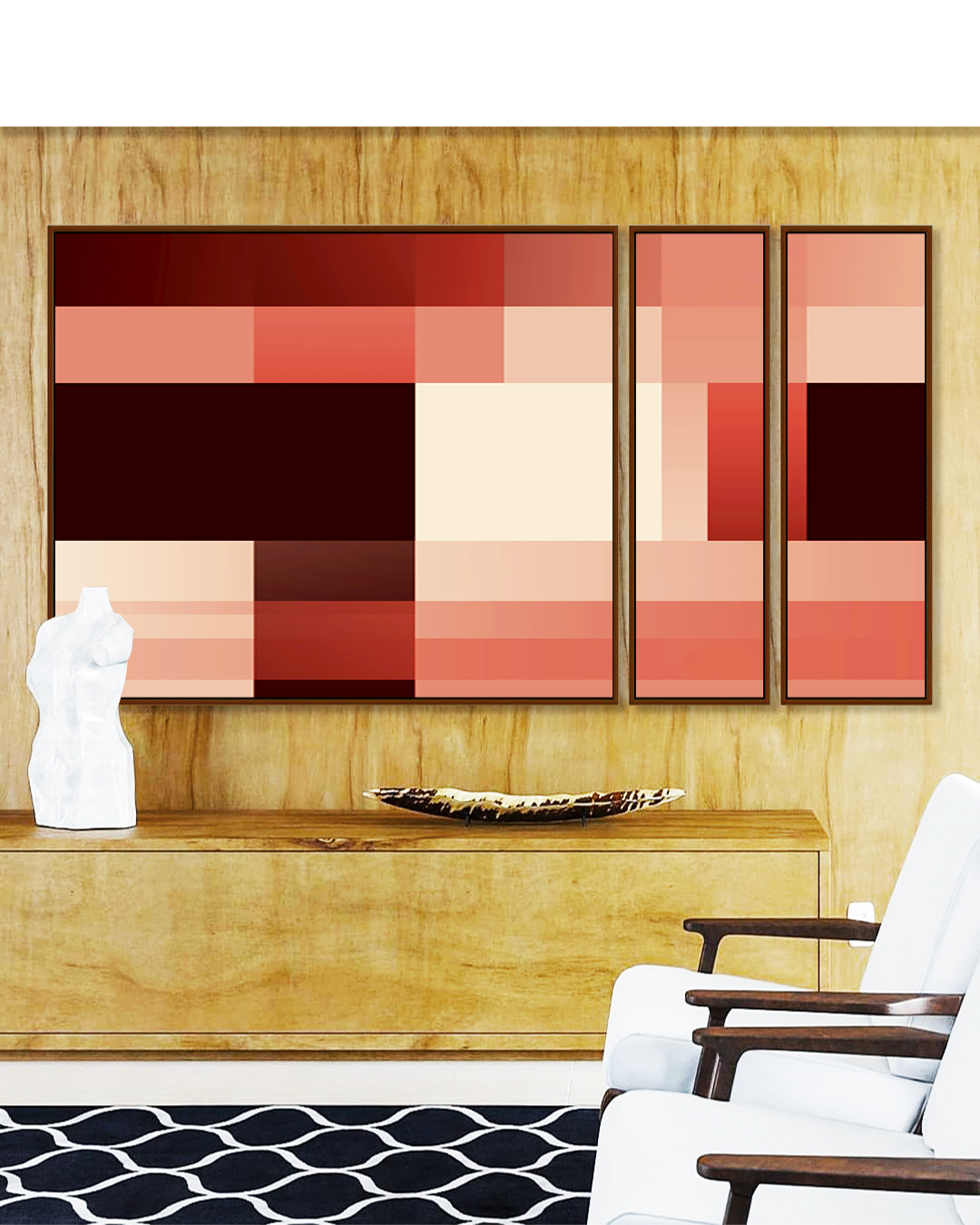 O degradê entre rosa e marrom dá a este Trio de Quadros Estilizados um charme sofisticado e acolhedor. A escolha certa para transformar salas, quartos ou escritórios em ambientes elegantes, modernos e cheios de harmonia visual, com um toque artístico.
