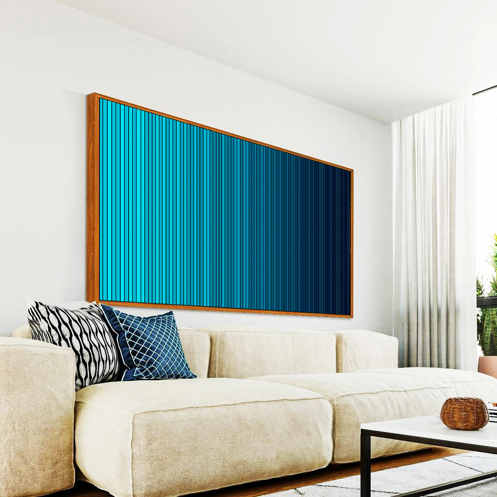 Sofisticado e atual, este Quadro Horizontal em azul degradê com listras abstratas cria um ponto focal elegante e equilibrado. Ideal para compor salas refinadas, quartos estilosos, escritórios contemporâneos ou halls de entrada imponentes.