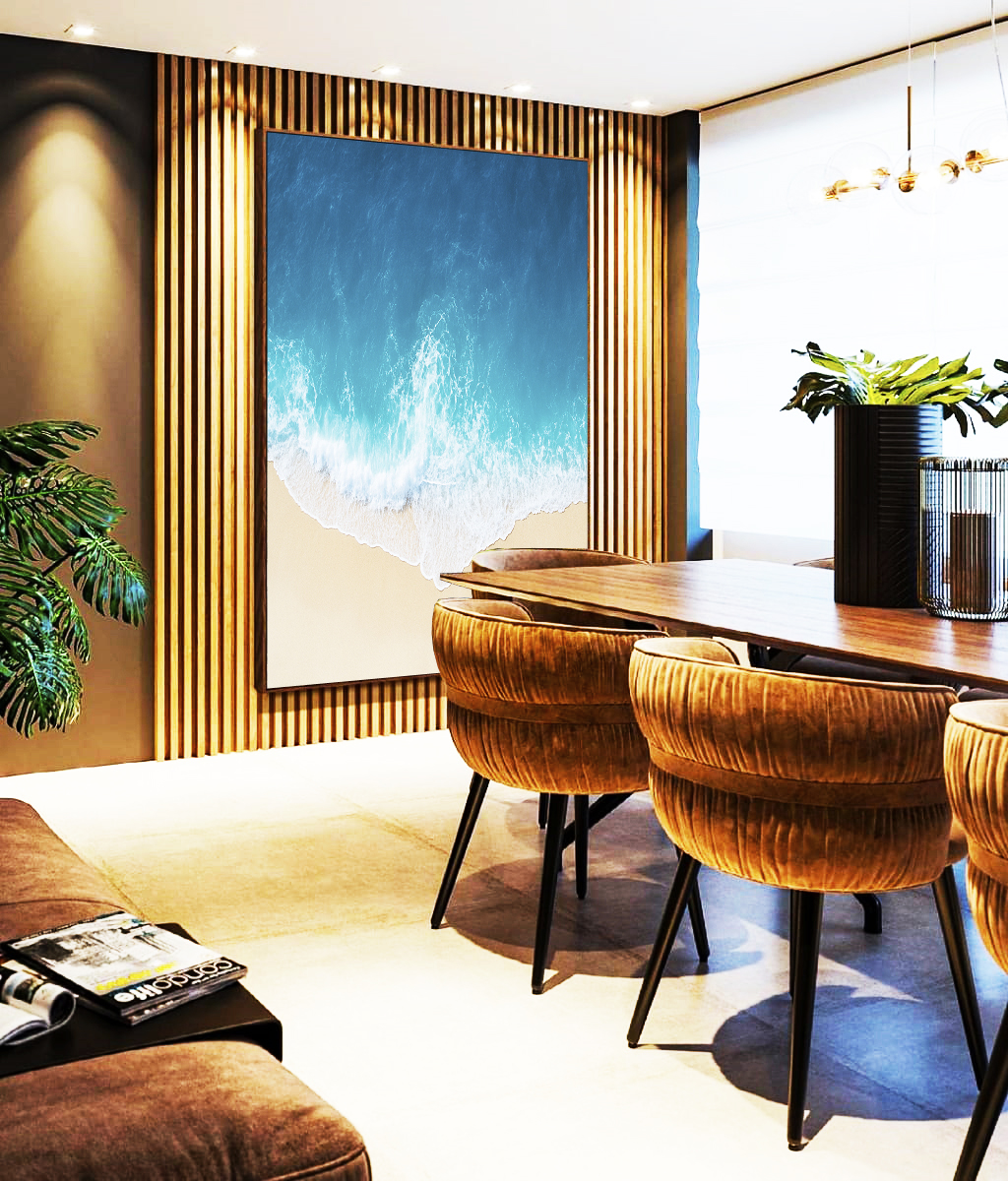 Inspirado na tranquilidade da natureza, o Quadro Vertical Mar Calmo em azul intenso e areia cria uma atmosfera serena. A Moldura Flutuante acrescenta leveza. Perfeito para destacar sua Sala, Quarto ou Escritório com elegância.