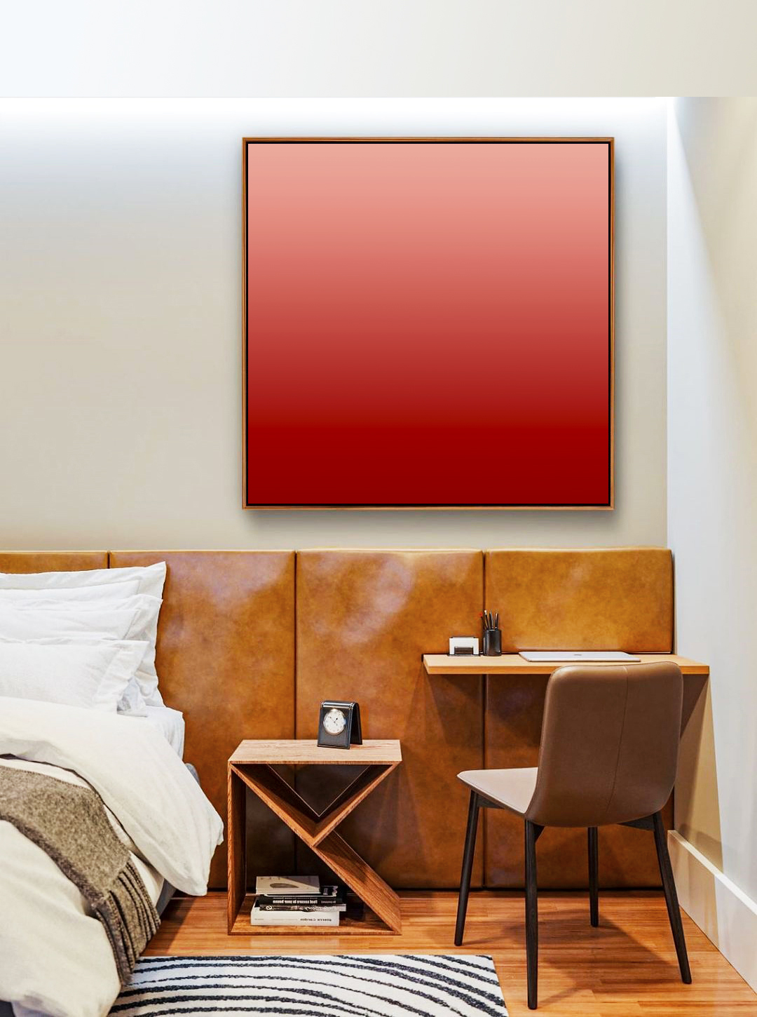 O Quadro Quadrado Abstrato em tons de vermelho carmim, rosa e salmão combina arte e elegância. Sua moldura extra fina flutuante realça o degradê moderno, perfeito para destacar salas, escritórios e quartos, criando um ambiente cheio de estilo.