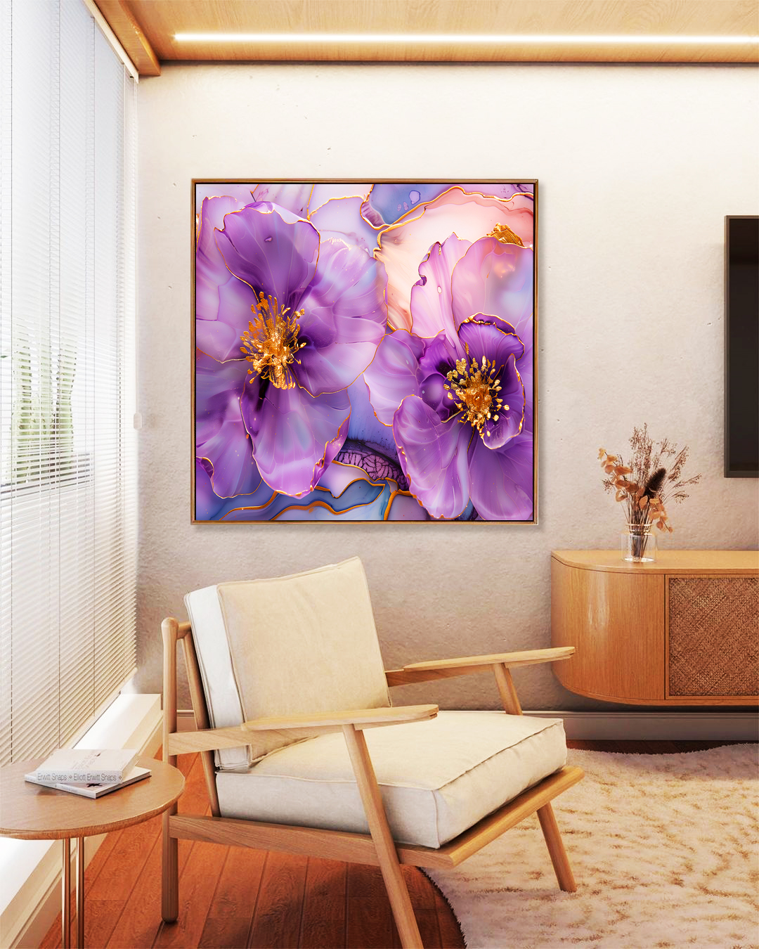 Com equilíbrio entre delicadeza e sofisticação, este Quadro Quadrado floral traz charme e modernidade. Ideal para salas acolhedoras, quartos elegantes ou escritórios serenos. A Moldura Extra Fina Flutuante realça o visual com sutileza única.