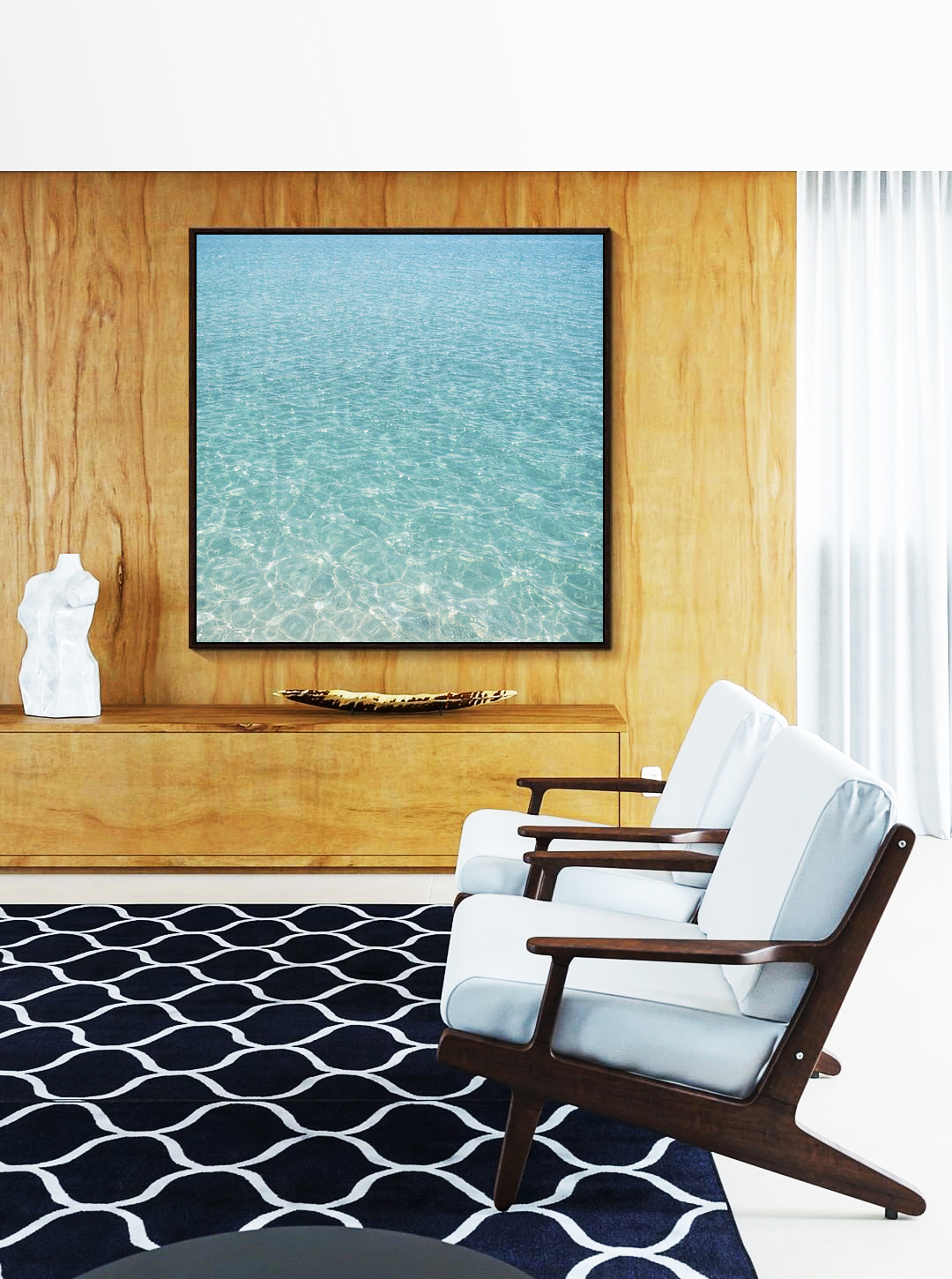 Quadro Quadrado Mar de Água Clara Iluminado Transparente Canvas Moldura