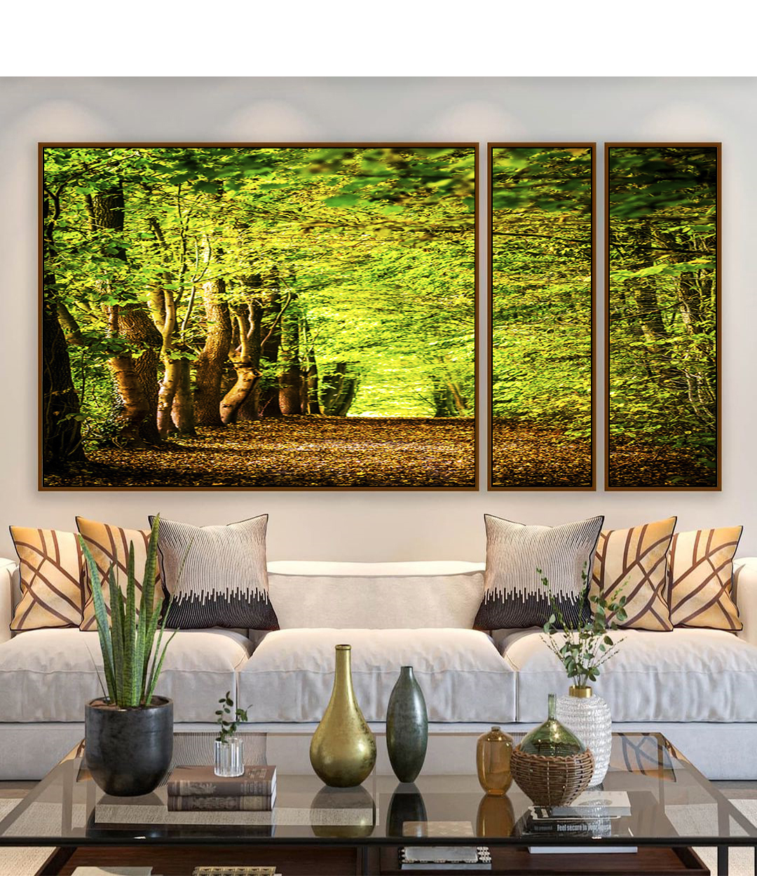 Este Trio de Quadros Estilizados transmite calma e conexão com a natureza através de um caminho entre árvores iluminadas. Uma obra perfeita para salas, halls de entrada ou escritórios que valorizam equilíbrio, elegância e beleza natural em cada detalhe.